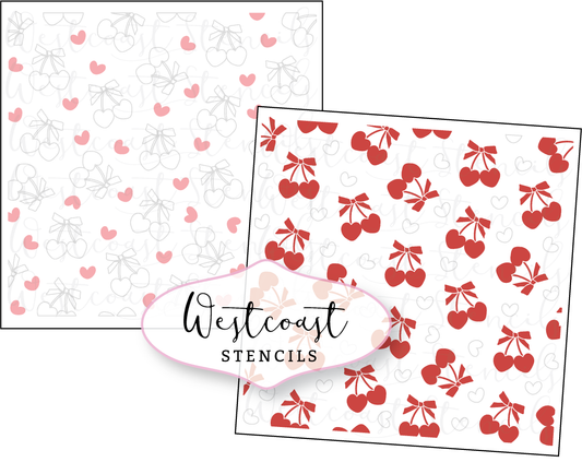 Cherry Hearts with Bows Stencil - SALE